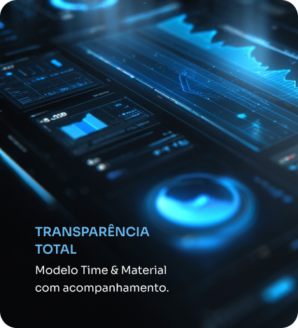Modelo Time & Material com acompanhamento contínuo e visibilidade total dos resultados.